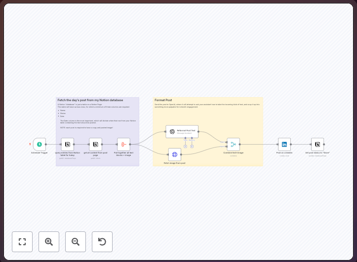 Overview: Automate daily LinkedIn posts using a Notion database, with status updates fed back into Notion for precise content management.